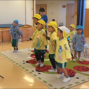 11月2週目。Warm Up→Greetings→Story→Song→Activity、というレッスンでした。Warm Upではleap, twistという2種類の動作に合わせてhungry frog、cute snakeになりきりやっています。GreetingsはHow are you? How is the weather?などの受け答えをボールを投げる動作に合わせてやっています。Storyは動画をシェアしました。SongはTeddy Bear。Activityは"Act like a bear! ready,,, switch "などの掛け声と同時に、ブロックから反対側のブロックに移動します。その間のオニにタグを捕まらないようにして、反対側に到着したら、最初の指示通りのmotionをやります。